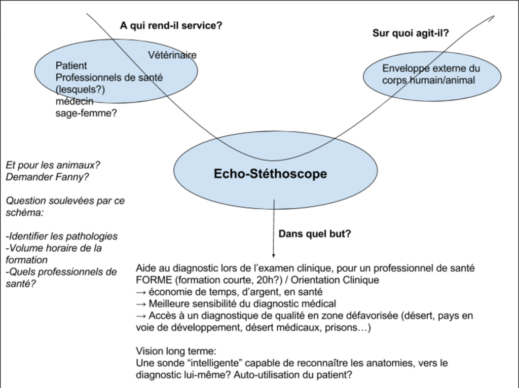 Voici le schéma "bête à corne" de la méthode "apte" qui récapitule la base du projet Echopen et explicite le pourquoi. Pourriez vous y jeter un coup d'oeil et le commenter avant vendredi matin? Merci ! https://docs.google.com/drawings/d/1nnm6XBpvT74xdEnMIAr6KTZ2bwj428GBi_LyP0ob40o/edit?usp=sharing De plus, n'hésitez pas à aller jeter un coup d'oeil à "Déclinaison du besoin médical en exigences techniques, dans la to do list, car j'ai mis quelques liens concernant les normes.